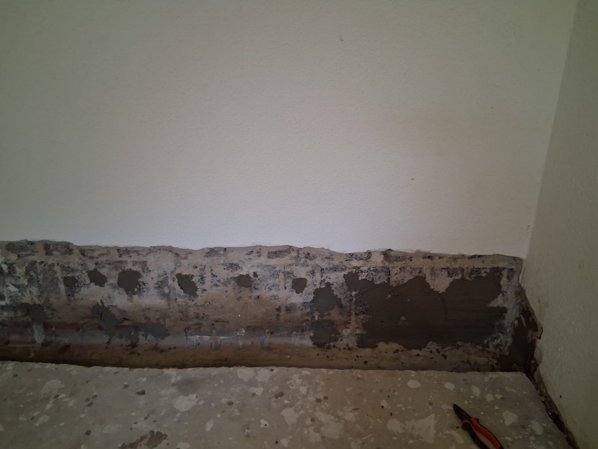 Remmers MB2K-Schicht ist drauf und Estrich ist auch wieder drin. Jetzt lassen wir das Zimmer noch etwas trocknen und dann kommt der Putz/Farbe wieder drauf, die Injektionslöcher werden noch verschlossen und es kommt noch neuer Boden rein. Dann hoffen wir mal, dass es trocken bleibt.