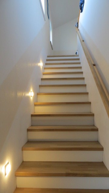 Ganz prima ist die gerade Treppe die 1m breit ist und der großzügige Flur im OG. Dieser wird dann schon mal als Spielzimmer für Eisenbahn und Rennbahn zweckentfremdet.