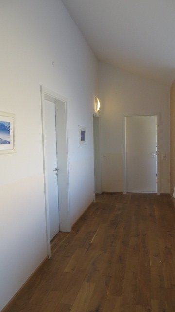 Innen ist alles fertig und wir fühlen uns sehr wohl. Die Zimmer sind gut geschnitten und gut zu möblieren gewesen. Das offene Wohn-/Esszimmer mit Küche ist toll. Wir haben auch keine Probleme mit Kochgerüchen. Im Bad möchten wir nicht mehr auf die bodengleiche Dusche verzichten. Hier haben wir auch keine Duschabtrennung benötigt. Das war bei 1,80m nicht nötig. Keine Kalkrückstände, kein putzen, kein schrubben, einfach pflegeleicht. Meine Frau dankt`s sehr.