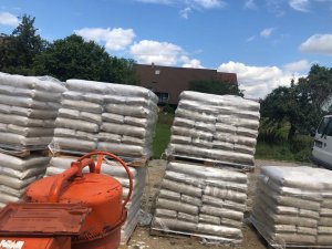 Außerdem kam Material für den Fussbodenaufbau im OG, splitfüllung und die HWF platten zum dämmen.