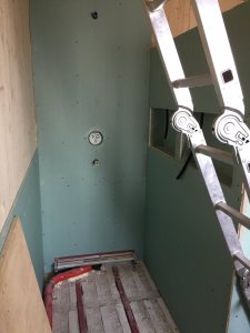 Montag wird das Gerüst abgebaut, dann bereiten wir uns auf den Leitungseinzug vor.