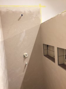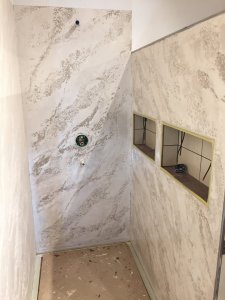 Ecken usw mit Eckwinkel und Dichtbänder ist klar, Wanne mit Wannendichtband auch klar, dieses wurde dann in die Flüssigabdichtung an der Ablage, sowie an der Wand angeklebt und mit eingearbeitet. So sollte es reichen.