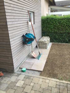 Hinter der Garage noch kurz die Platten gelegt.