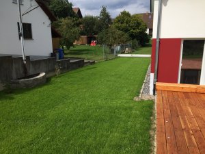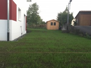 Diskutiere Unser Haus #2 im Mein Hausbau Forum im Bereich Rund um den Bau; Rasen eingesät!!!!! Jetzt geht im Garten erstmal 2-3-4 Wochen nix... Hinter der Garage noch kurz die Platten gelegt. Denke morgen beschäftige ich...