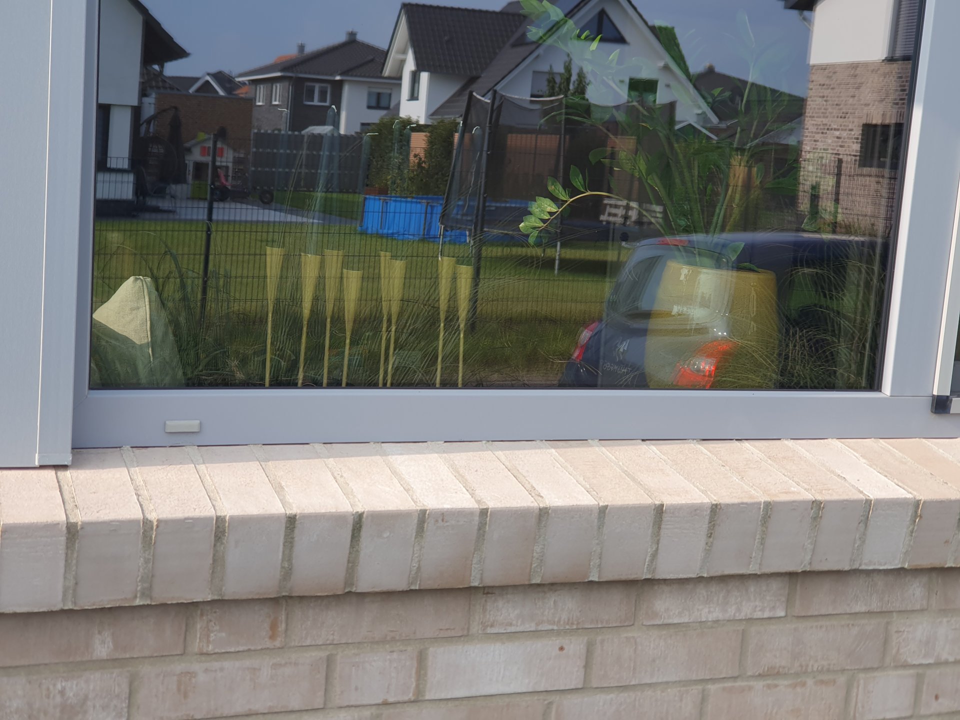 Er muss die horizontale Fuge zwischen Klinker und Fenster versiegeln. RICHTIG?