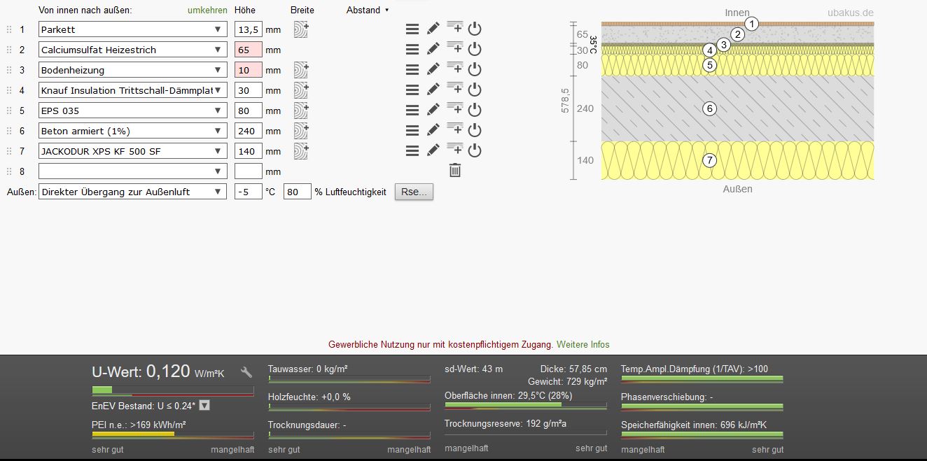 Hier übrigens einmal eine stark vereinfachte Berechnung der Oberflächentemperatur für die Estrichstärken 65 mm und 85 mm mit dem U-Wert Rechner (.