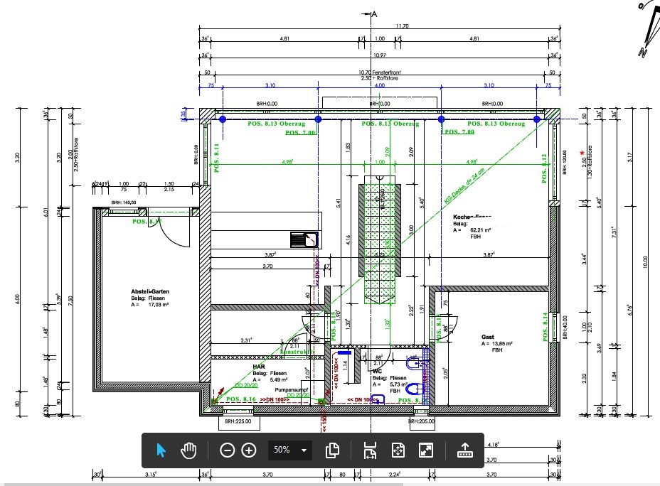 Im Anhang noch ein Grundriss des Geschosses, um das es sich handelt. DIe Abweichungen sind vor allem an den bildunteren Seiten links und rechts.