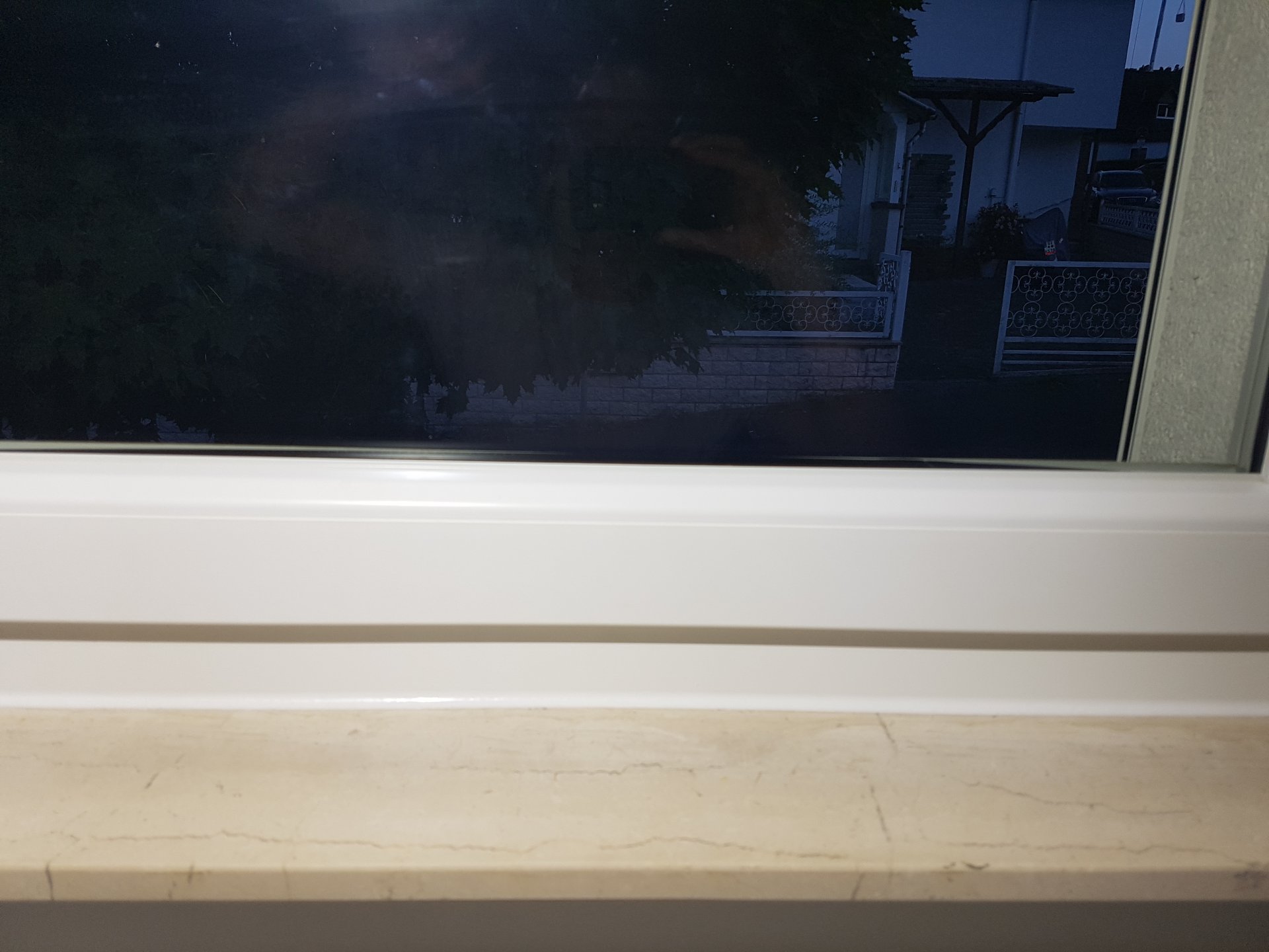 Glaube nicht dass die klotzung Schuld ist die geht über beide Scheiben. Aber nachschauen ist doch kein Problem. Vermute aber das war schon. Bei der Fertigung kann das vorkommen. Danach eher nicht da der Abstand Halter unten und seitlich verklebt ist.
