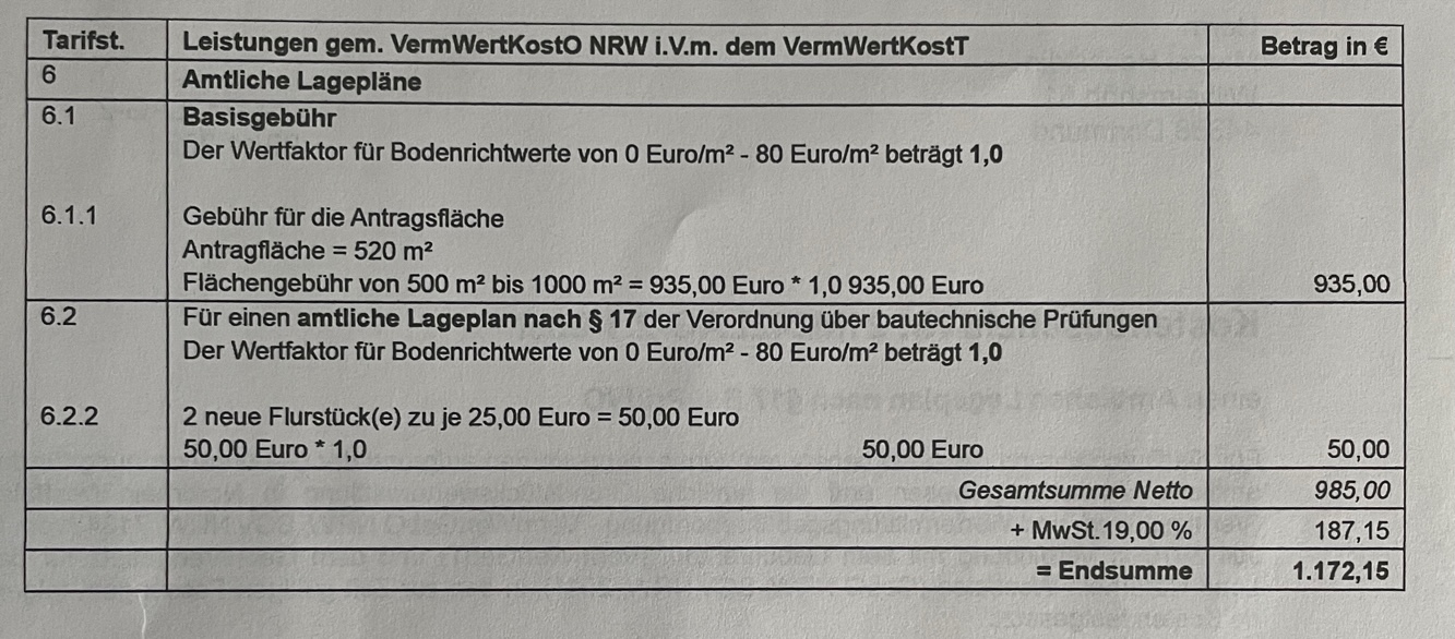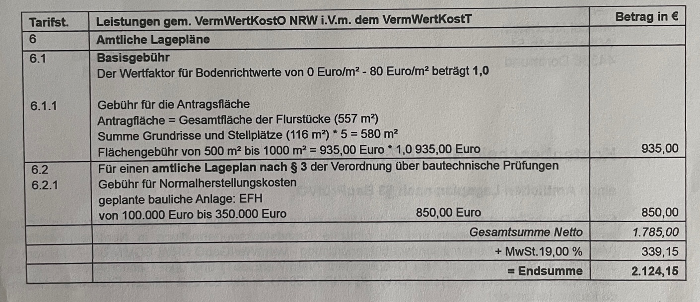 Diskutiere Vermessung Vermesser Rechnung prüfen im Baugesuch, Baugenehmigung Forum im Bereich Rund um den Bau; Hallo zusammen, wir haben einen Vermesser mit der Teilung unseres Grundstück und der Lageplanerstellung für ein 1FH beauftragt. Zuerst hatten...