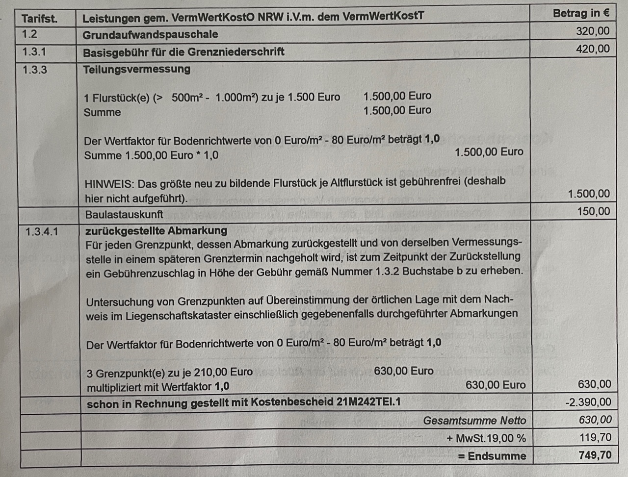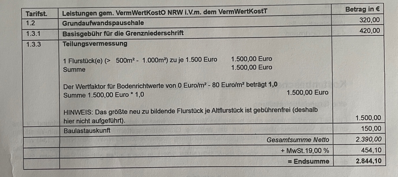 Rechnung vom Vermesser