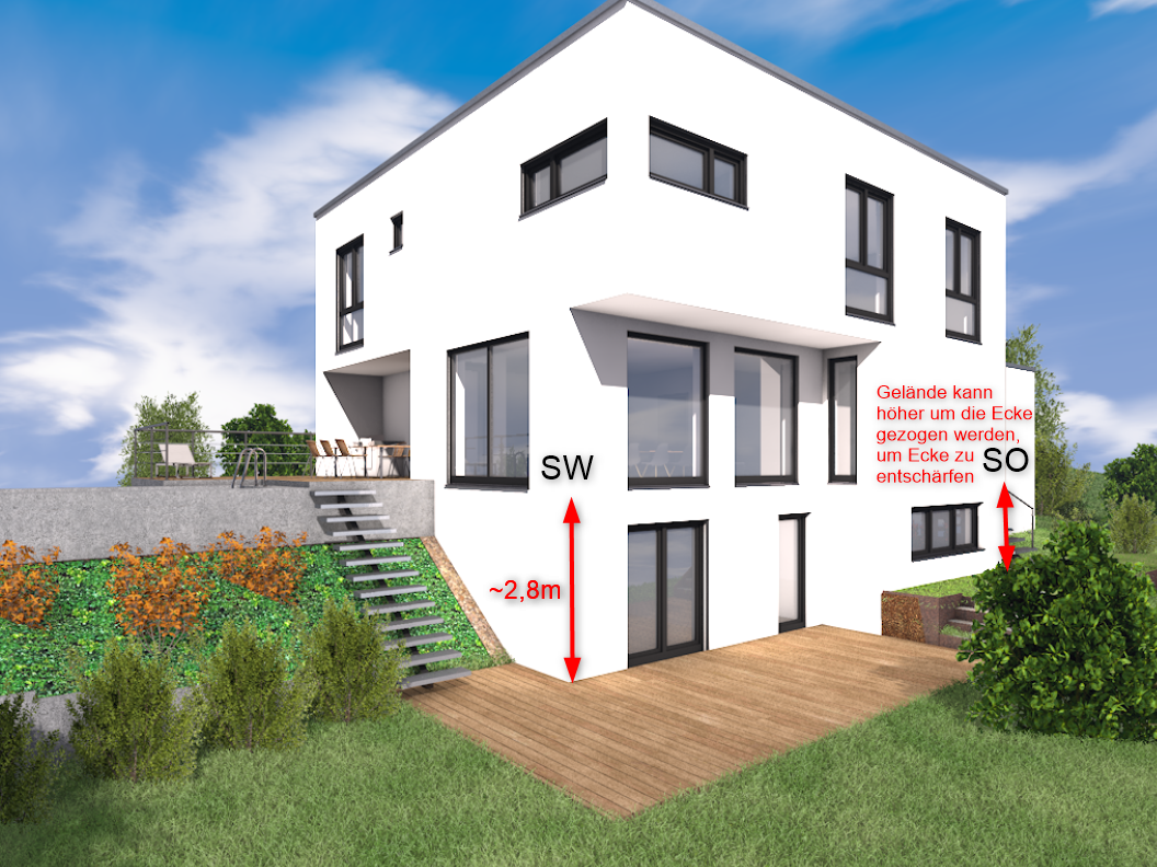 Diskutiere Vollgeschossigkeit Keller BW im Architektur Allgemein Forum im Bereich Architektur; Hi zusammen, ich bin momentan an der Planung eines EFH. Da das Grundstück von NO nach SW einen leichten Hang hat, wird der Kehler südseitig offen...