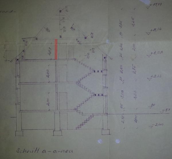 Wand mit Balken im Dachgeschoss entfernen: Hallo, wir renovieren unser Haus und möchten eine Wand im Dachgeschoss entfernen und ca. 1,5m weiter eine andere Wand einziehen (s. Bild 1)...