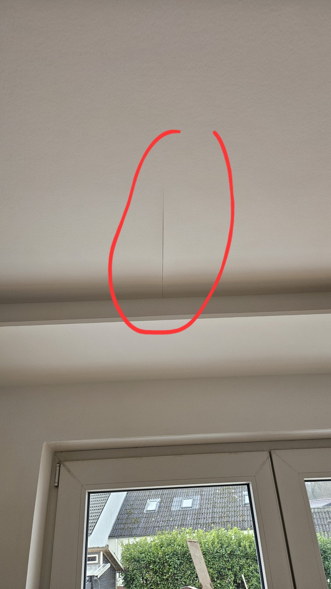 nachdem wir ein Haus aus 1965 saniert haben, ist mir heute in einem Zimmer im EG aufgefallen dass sich die Tapete etwas von der Decke löst (Malervlies). Auf den Fotos etwas schwer zu erkennen, die ersten 30 cm der Decke zu Aussenwand sind abgehangen, dann der Übergang auf die verputzte und tapezierte Rohdecke.