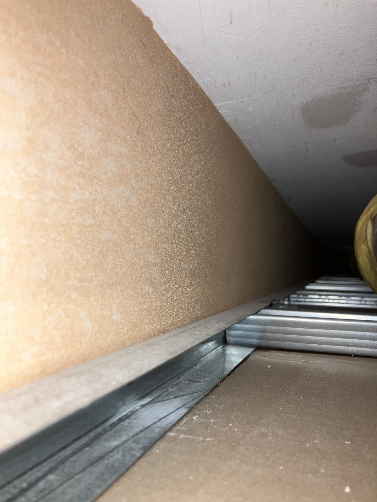 Heute wurde es im Münsterand erstmals nachts knackig kalt und ich hatte an 3 Stellen Kondenswasser an der Wand, welches die verspachtelte Wand heruntergelaufen ist. Das hat mir natürlich Sorgen gemacht und ich habe den Gipskarton mit dem Multitool wieder geöffnet, um nachzusehen. Darüber war es trocken. Man sieht aber auf den Fotos, dass der Gipskarton am Kontaktpunkt mit dem Mauerwerk feucht ist. Die anderen Fotos vom inneren der Decke zeigen für mich keine Besonderheiten.