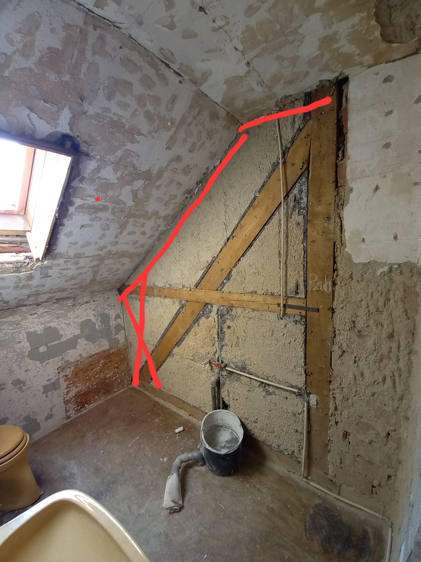 Diskutiere Wand mit Balken im Dachgeschoss entfernen im Sanierung konkret Forum im Bereich Altbau; Hallo, wir renovieren unser Haus und möchten eine Wand im Dachgeschoss entfernen und ca. 1,5m weiter eine andere Wand einziehen (s. Bild 1)...