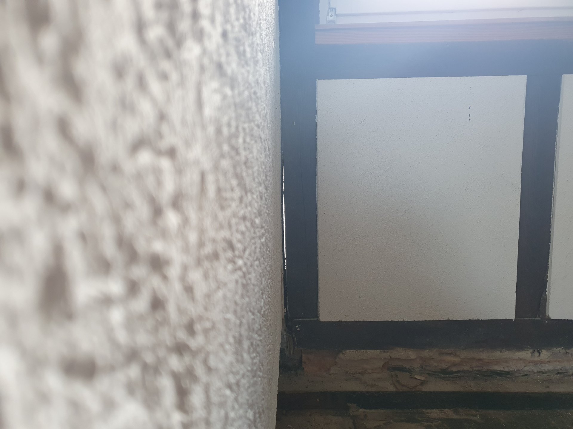 Die bestehende Wand ist mit 5cm styropor gedämmt und anschließend verputzt. Aber man kann am holzständer durch einen Spalt ins Freie schauen...