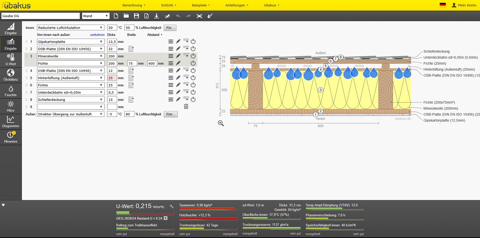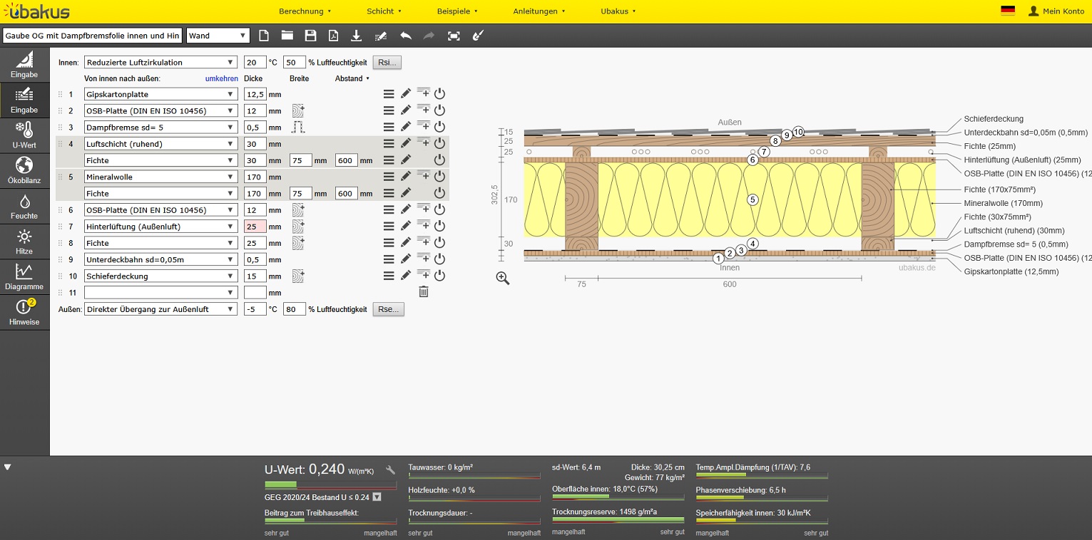 Diskutiere Wandaufbau Holzkonstruktion im Holzrahmenbau / Holztafelbau Forum im Bereich Neubau; Hallo zusammen, es geht um einen Wandaufbau einer Gaube. Hierbei habe ich den Aufbau in Ubakus eingegeben. Ich füge noch zwei Bilder vom Aufbau...