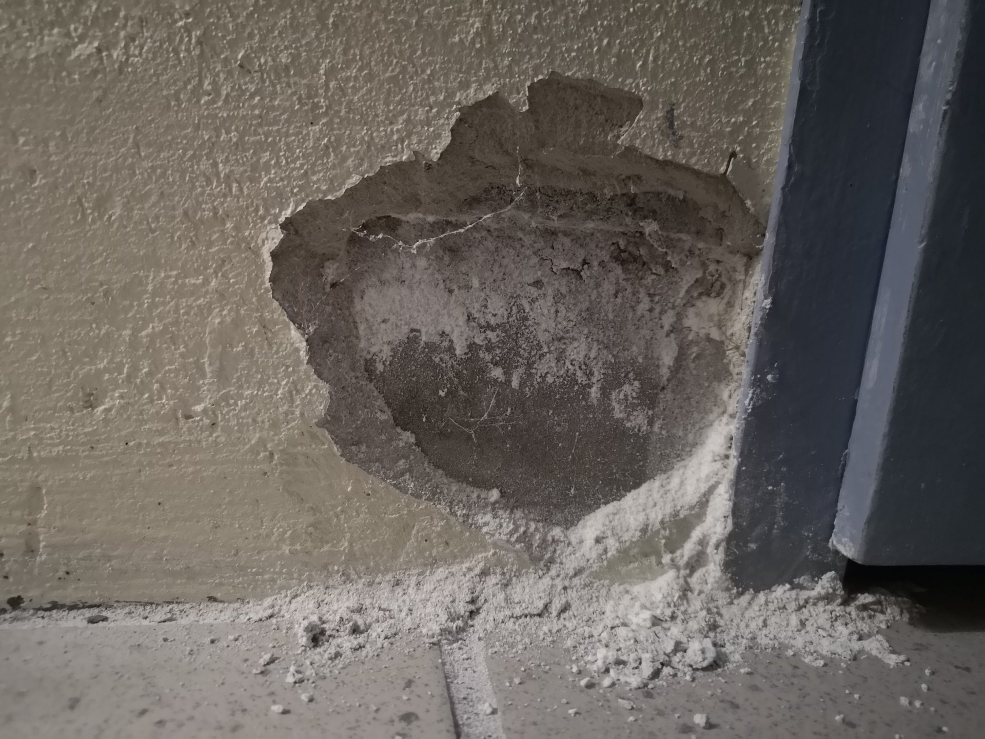 Schau dir das Foto noch mal genau an du siehst doch die horizontalen Streifen im Putz wette dass da schon mind 2. Einer ausgebessert hat . Passt nicht zum Rest der Wand und das ist auch nicht nur der Pinselstrich der Farbe . Schnell ausgebessert und schnell von links nach rechts gewischt mit der Kelle. Und dann ein paar mal gestrichen so sieht das für mich aus vielleicht war ja im Heizungskeller mal was undicht oder defekt wer weiß