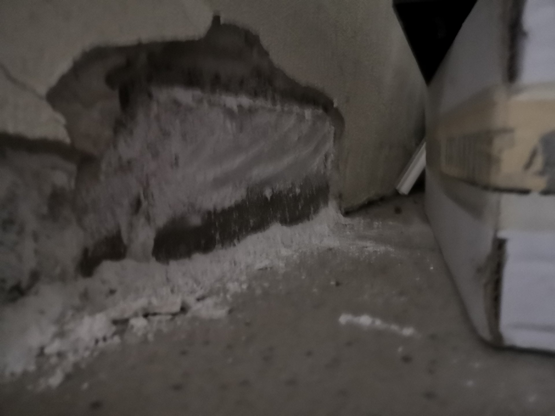 Hi, mir ist im Keller an einigen Stellen abgeplatzter Putz aufgefallen. Dort drunter sieht man dieses weiße Zeug, wie auf den Fotos. Es ist quasi wie Mehl, eher noch feiner und schmiert auf den Fingern. Ist aber trocken. Was ist es? Danke