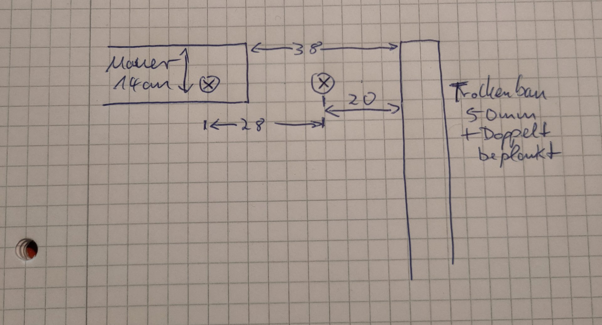 Dann hab ich deine "simple" Ausführung wohl gar nicht richtig verstanden. Das heißt, du würdest an der Stelle des Ankers bei der doppelten GK gar keinen Ständer hinter dem Ankerpunkt setzen, sondern lediglich die GK von hinten mit einer Holzlatte verstärken (als Aufnahme für die Stockschraube)?