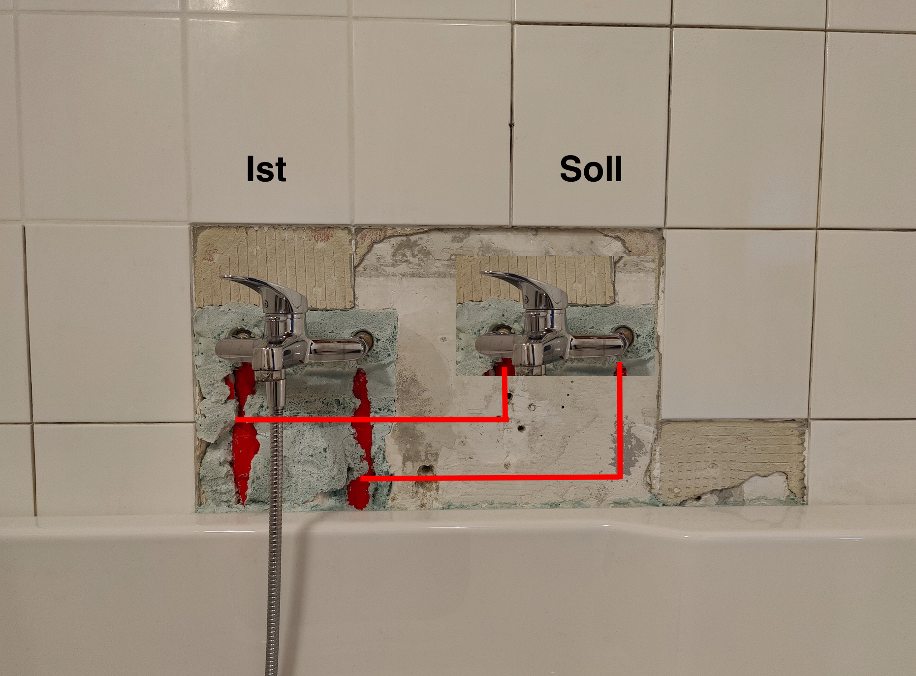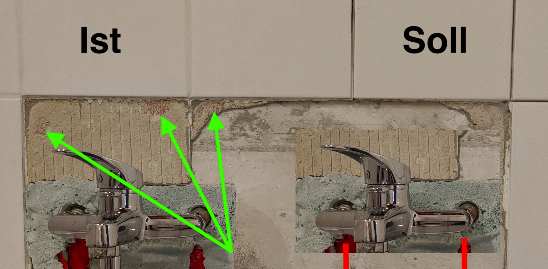 Die Armatur auf dem Bild ist nicht die Ziel-Armatur, das ist nur die alte, vorläufig installiert. Die Wand ist aus Gipsziegel.