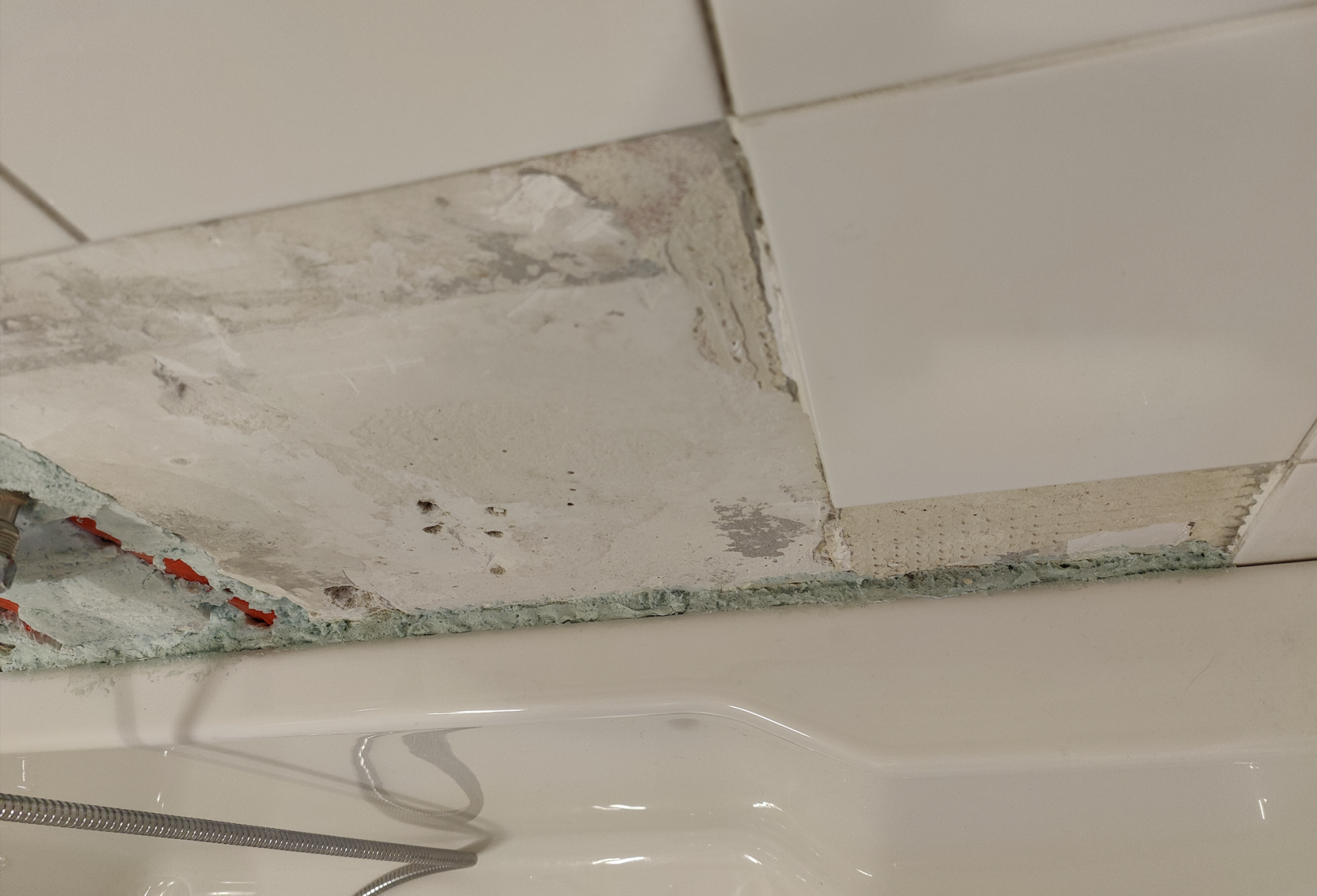 nein, nicht die Schutzüberzüge der Wasserrohre, auf dem Bild hier siecht man besser die rote Schicht unter dem Fliesenkleber.