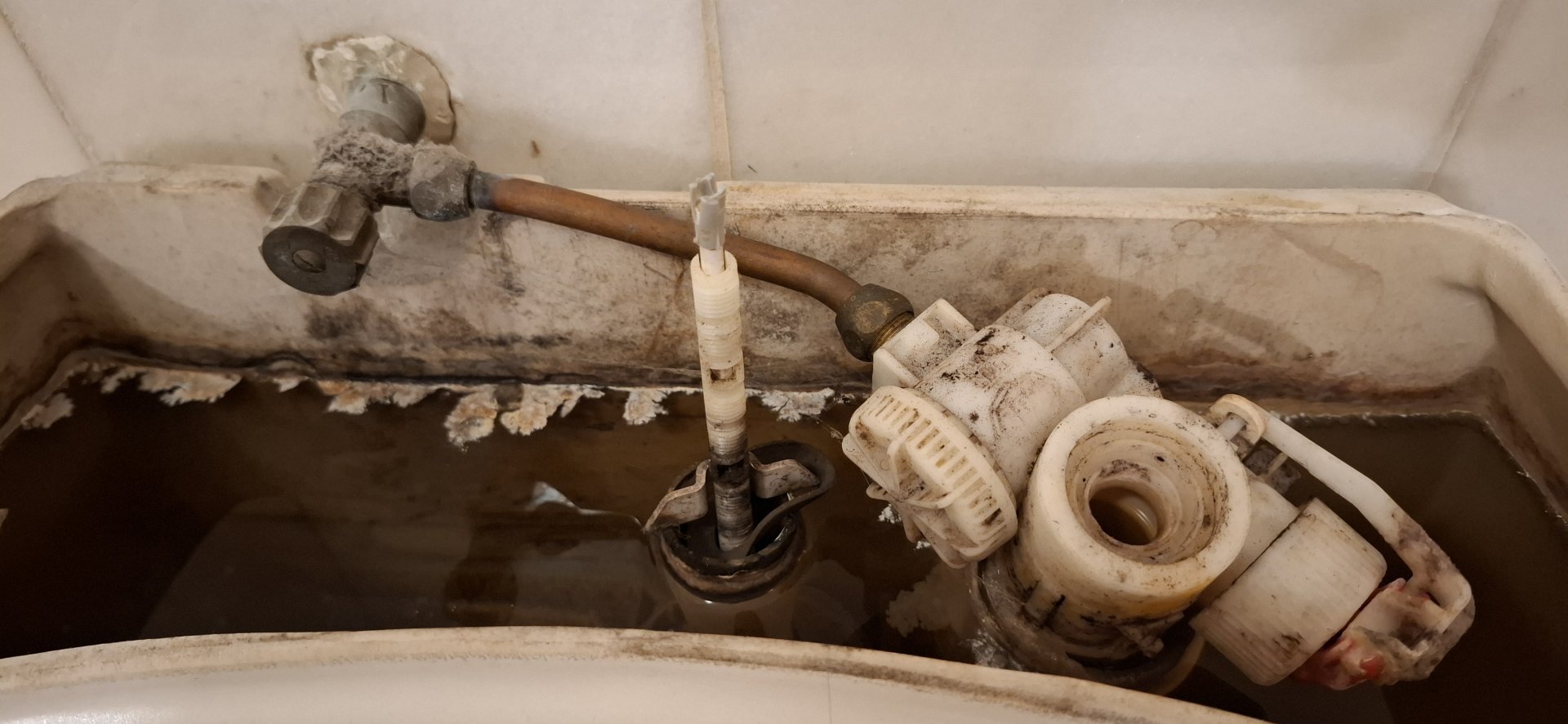 - Riss im Spülkasten, wenn es sich um Keramik handelt (kann ich auf dem Foto gerade leider nicht so gut erkennen, aber könnte sein) ebenfalls. Bei Kunststoff wäre ich da vieleicht etwas vorsichtiger mit Rissen. Der lässt sich aber auch separat von der Schüssel tauschen. Muss man halt schauen wegen der Aufhängung, dass es von der Höhe her passt und mit nem Forstnerborer oder der Lochsäge ein Loch rein machen oberhalb vom Wasserstand fürs Eckventil. Das kannst vermutlich auch gleich mit einplanen inkl. nem Flex Schlauch (der sollte bis zur Sanierung halten). Das kann gut sein, dass das Ventil zu Lebzeiten nicht bewegt wurde und sobald du es zu / auf drehst die Dichtungen reissen und es undicht wird (oder das Hauptwasser abdrehen anstatt dem Ventil zudrehen).