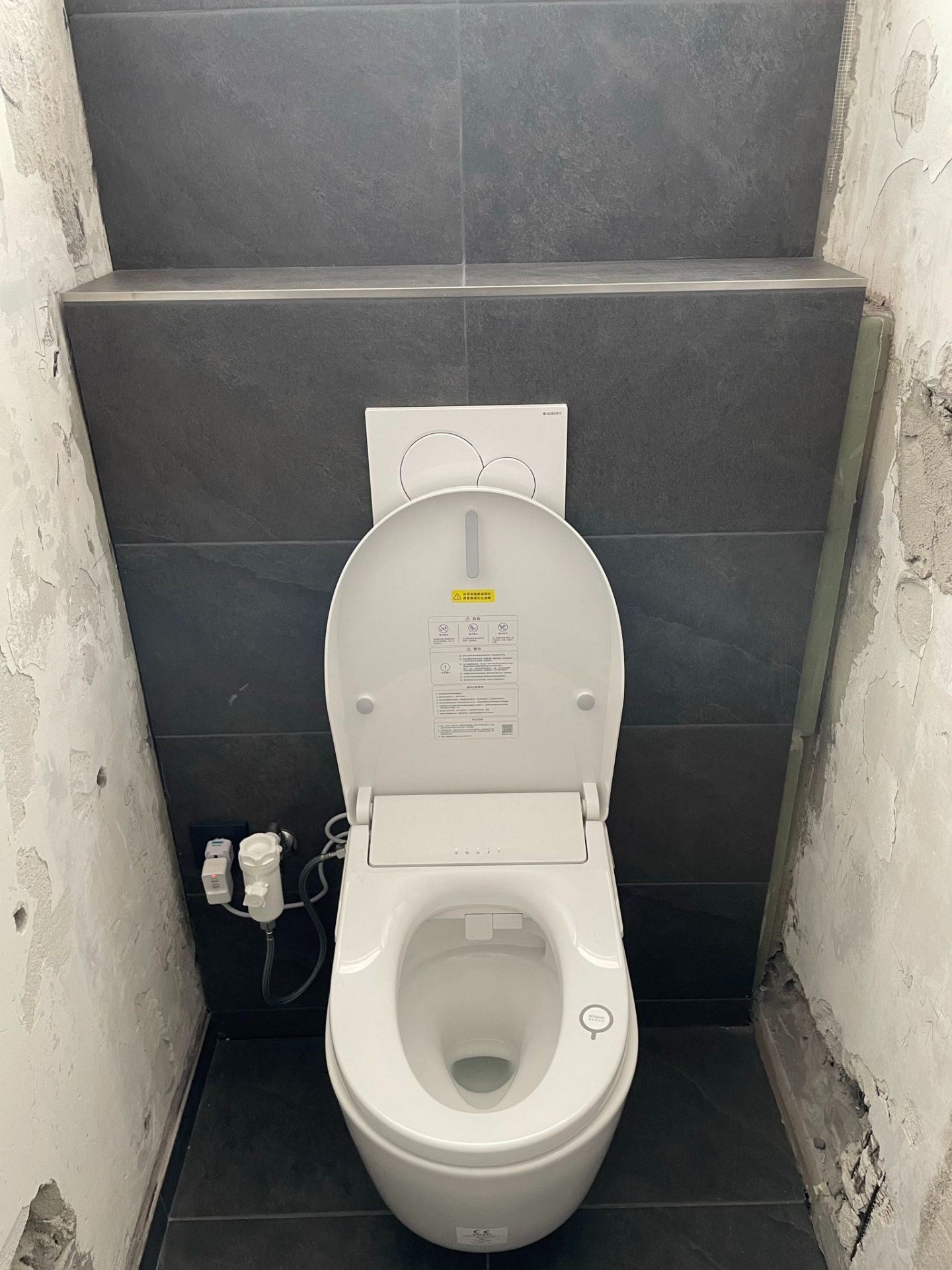 wir haben eine Sanitärfirma beauftragt eine Badsanierung durchzuführen, dabei wurde im WC-Bereich ein Unterputz Spülkasten eingebaut. In Abstimmung mit der Firma wurde eine zusätzliche Steckdose und ein Kaltwasseranschluss neben der Toilette gesetzt, da wir einen WC Deckel mit integrierter Bidetfunktion installieren wollten.
