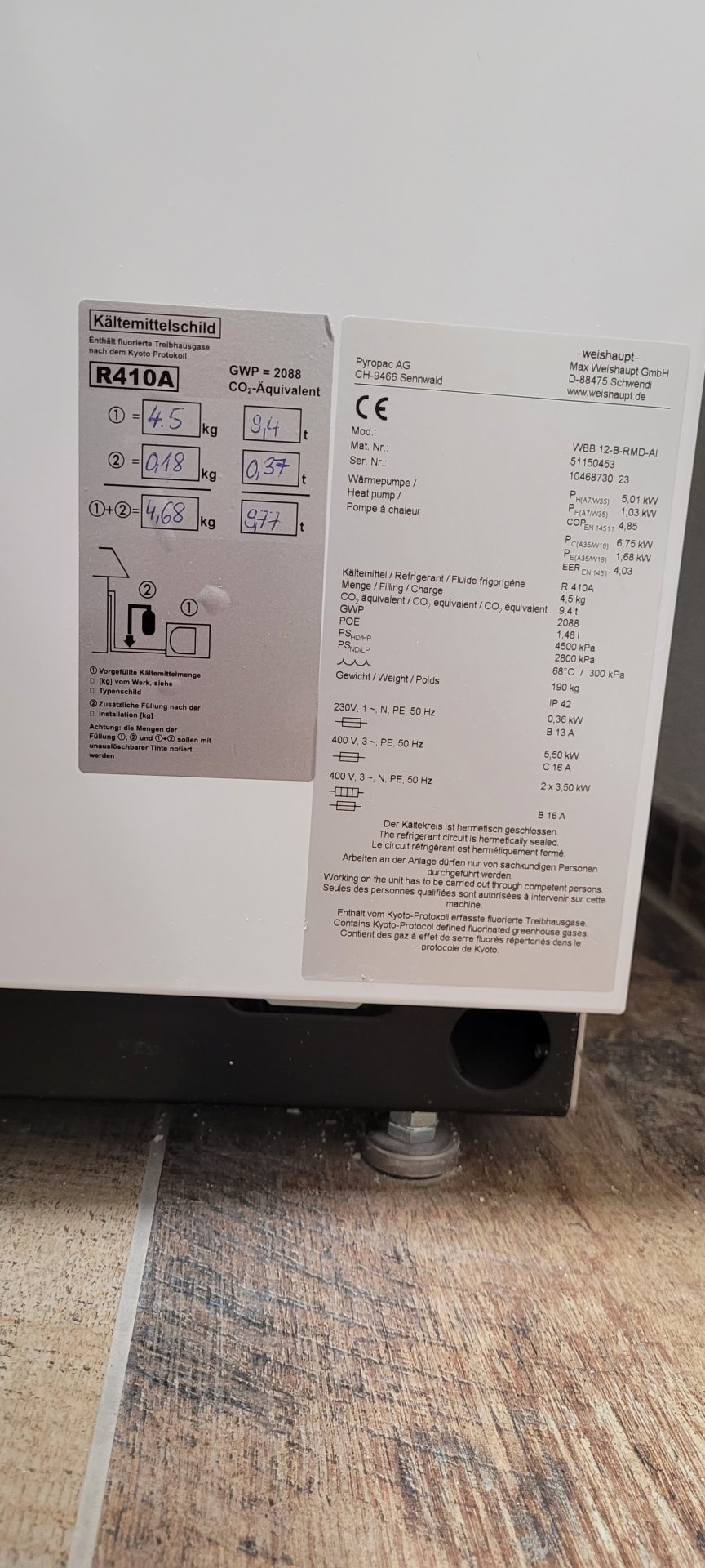 Diskutiere Weiß jemand vielleicht, was das sein kann? im Tiefbau Forum im Bereich Neubau; Bin gerade nicht vor Ort, ist aber eine Weishaupt Biblock WWP LB 12-AR. Kältemittel ist offensichtlich R410A(?). [ATTACH] Hilft das weiter? Dann...