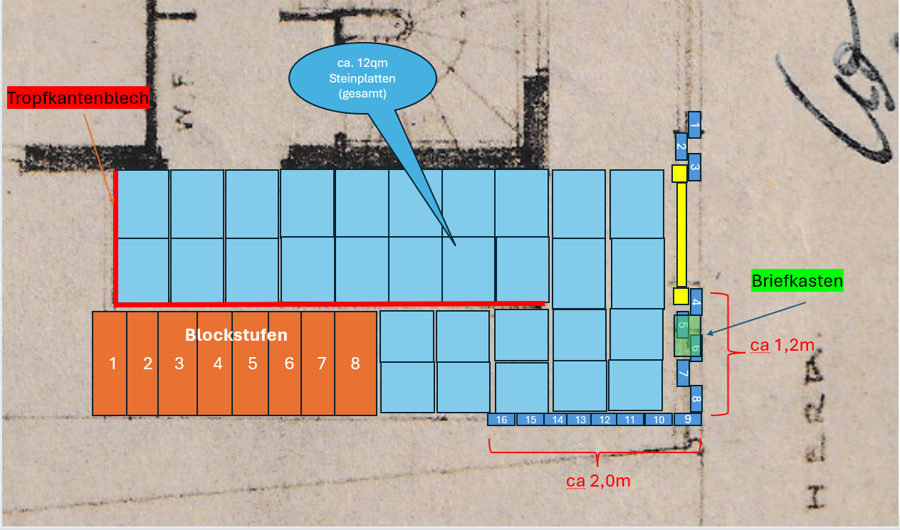 im Eingangsbereich wollen wir Palisaden setzen ...tlw. werden die Palisaden im Versatz , als auch nebeneinander gestellt....(Details siehe Skizze).