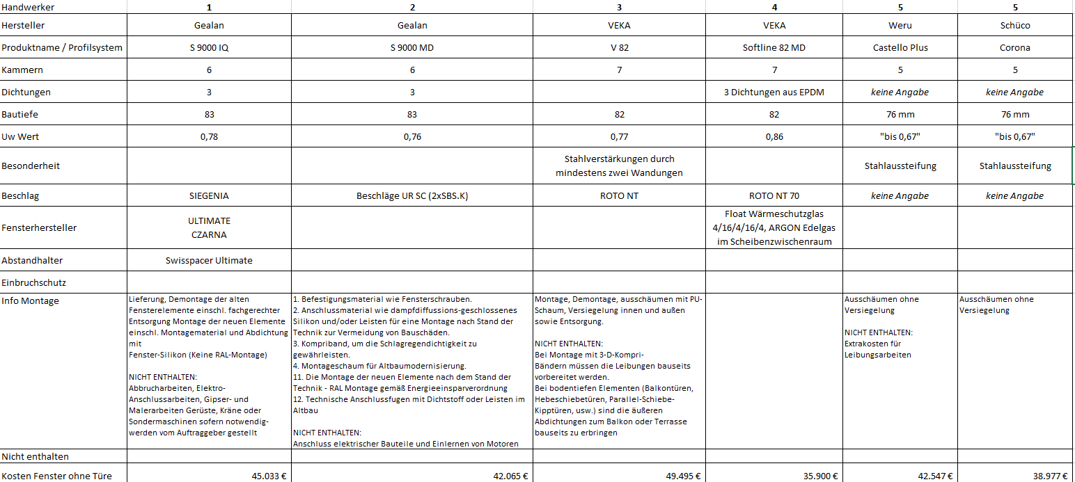 Welches Angebot? VEKA V2 vs. VEKA Softline 82MD vs. Gealan S9000 vs. Weru