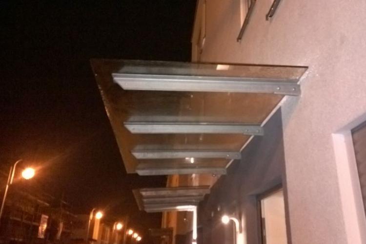 Mir geht es jetzt nicht im besonderen um das Detail, sondern generell um unsägliche flach geneigte Glasvordächer, von denen ich kein einziges jemals gesehen habe, das für länger als ein paar Tage gut aussah und ich kann mir kaum vorstellen, dass ich der Einzige bin, dem so etwas auffällt.