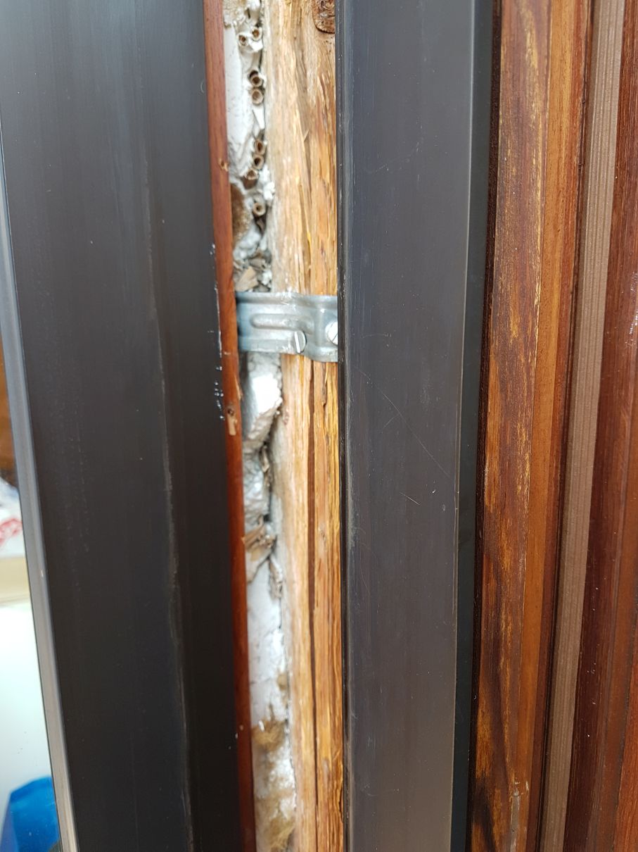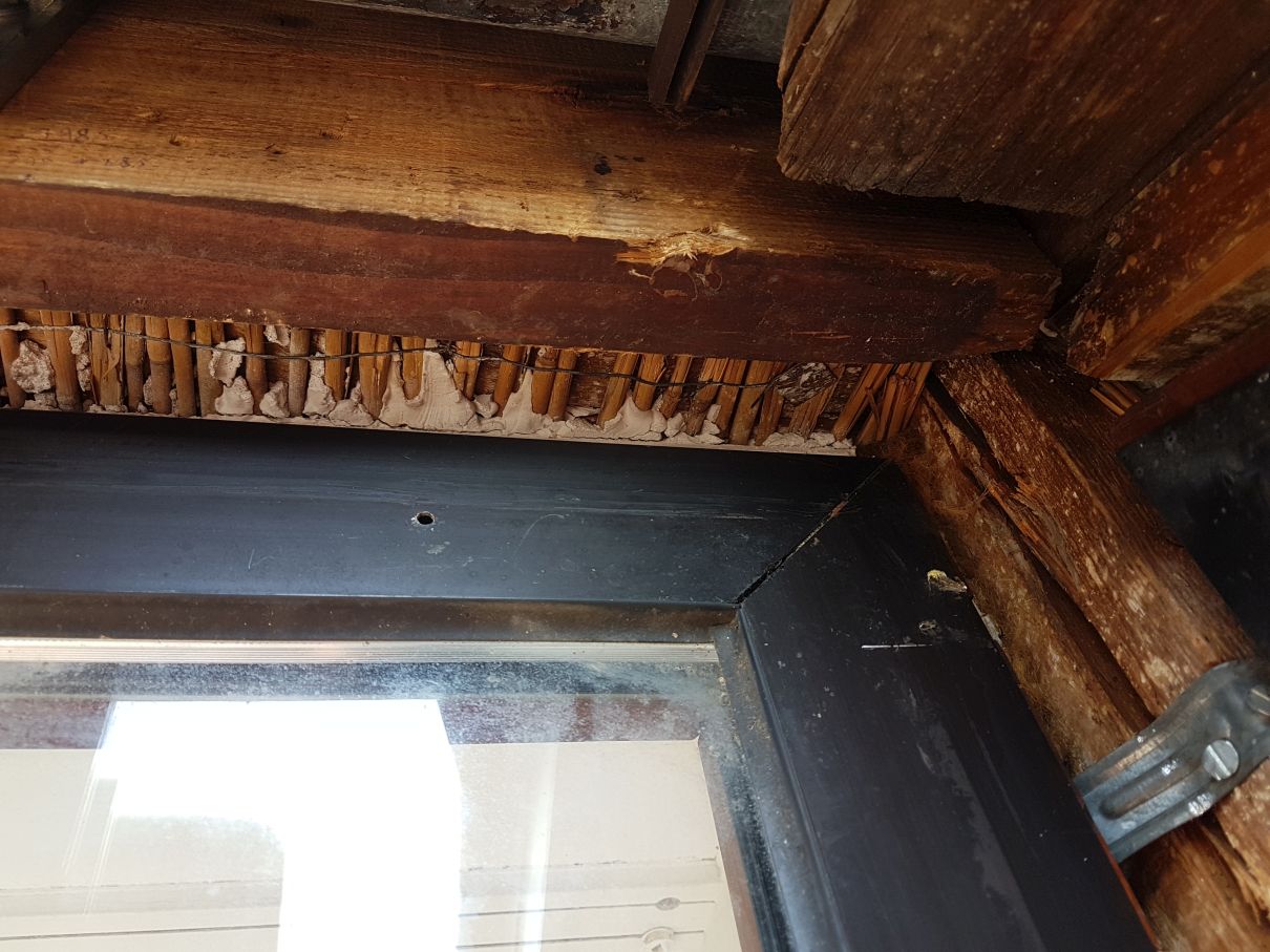 Fugendichtband und Stück Dämmung schaut aus fertiger Wand raus