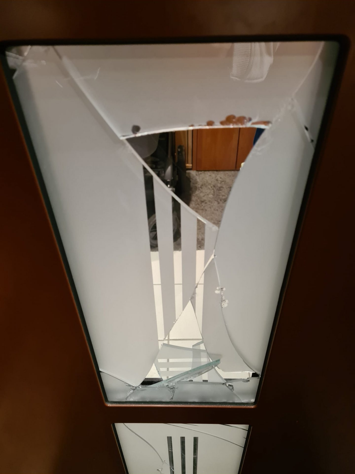 1. Tür durch Durchzug ins Schloss gefallen dadurch die äußeren Gläser defekt.