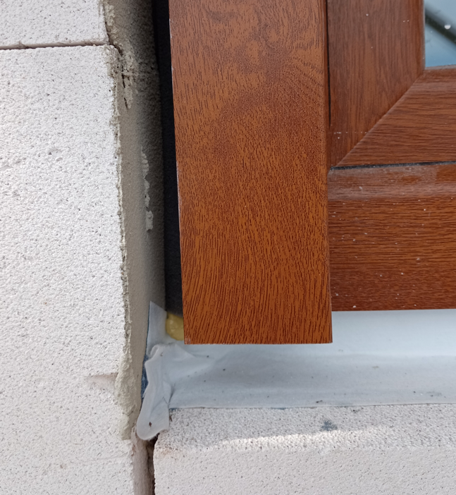 Hier ein Bild.Das Fenster hat einen FBA. Seitlich wird der Verputzer eine Platte aus EPS einbauen und überputzen.