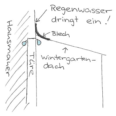 Wintergarten-Dach nicht richtig abgedichtet - es tropft