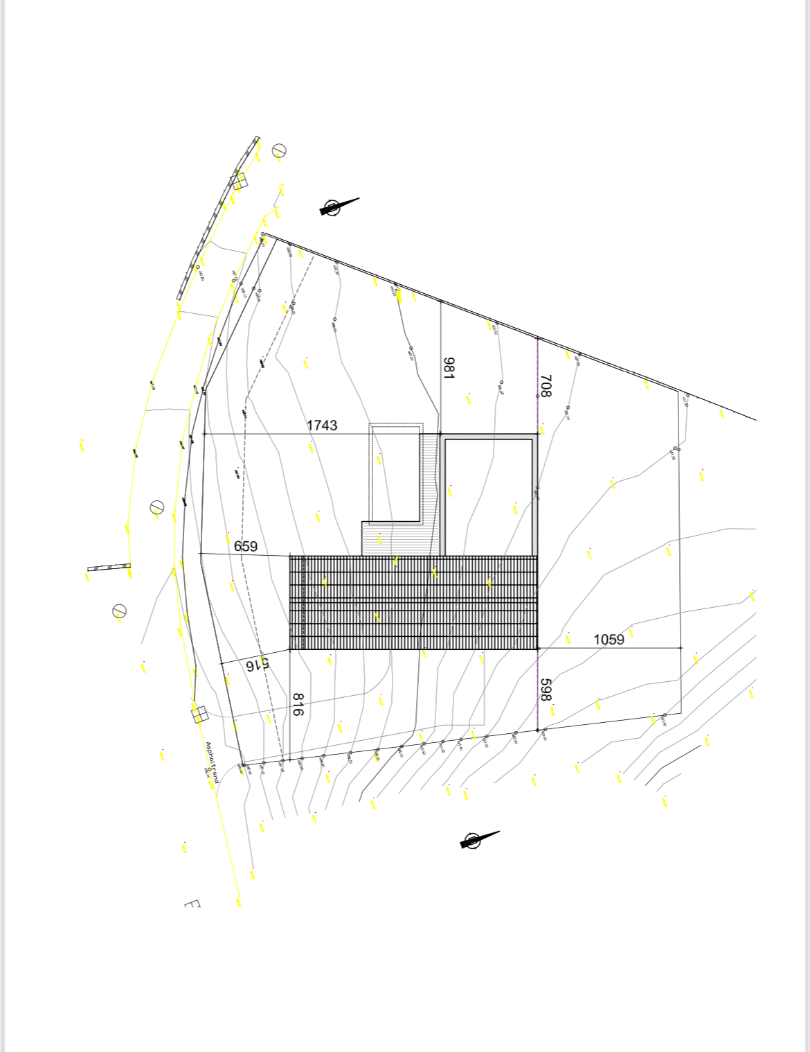 Leider ohne Erläuterungen / Bezeichnungen, aber egal. Der Baukörper ist insofern "falsch" ins Gelände gestellt, wie er dramatischstmöglich den Berg kreuzt; die Treppenlaufrichtung gegen das Gelände setzt dem noch die Krone auf. Der Angeberpool (für ein Planschbecken zu teuer und für ernsthaftes Bahnenschwimmen zu kurz) und der das Haus unterfahrende Carport sind offenbar Must-haves, die als prägende Elemente im Lastenheft stehen. Was macht der Architekt beruflich ? (Euch die Pinterest-Flausen austreiben offenbar nicht). Seid Ihr Influencer oder wozu die Showkulisse anstatt eines Eigenheimes ?