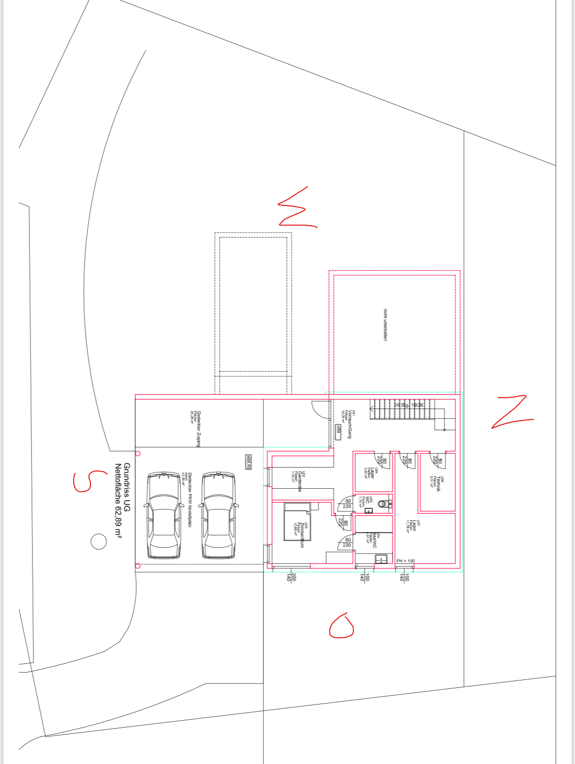- Hier kommen wir noch zu keiner Lösung. Es gibt 5 Varianten. Ziel ist das UG so zu optimieren, dass Kosten/Nutzen stimmen. Das UG kann auch von den m2 gerne kleiner werden. Wichtig wäre es einen Technikraum, Abstellmöglichkeiten mit circa 20m2, ein Büro/Gästezimmer mit kleinem Bad und WC, Haustüre, Garderobe und Parkplätze unterzubringen.
