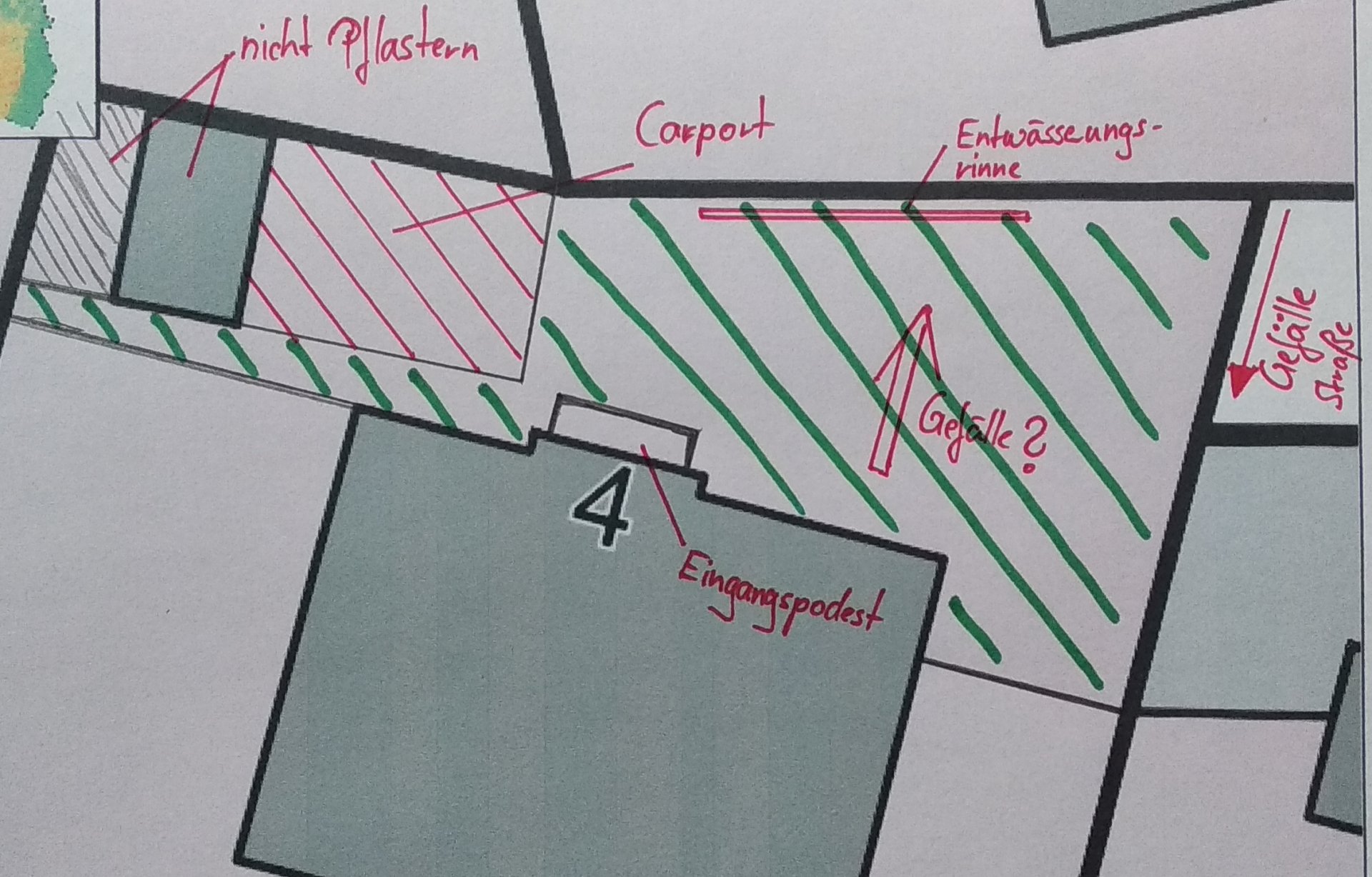 Diskutiere Wohin mit dem Gefälle (Hofeinfahrt)? im Außenanlagen Forum im Bereich Rund um den Garten; Hi, ich will demnächst meinen Hof (ca. 150qm) pflastern. Auf dem Bild soll die Grün schraffierte Fläche inkl. Rot schraffierte Fläche unter dem...