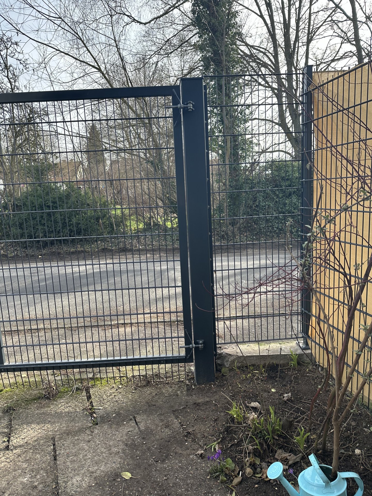 Zaun alternativen sichtschutz (doppelstabgitter): Hallo ich hab mir wie auf dem bild doppelstabgitter zugelegt, Das problem was ich habe wie man sehen kann das das graue sich irgendwie schrumpft,...
