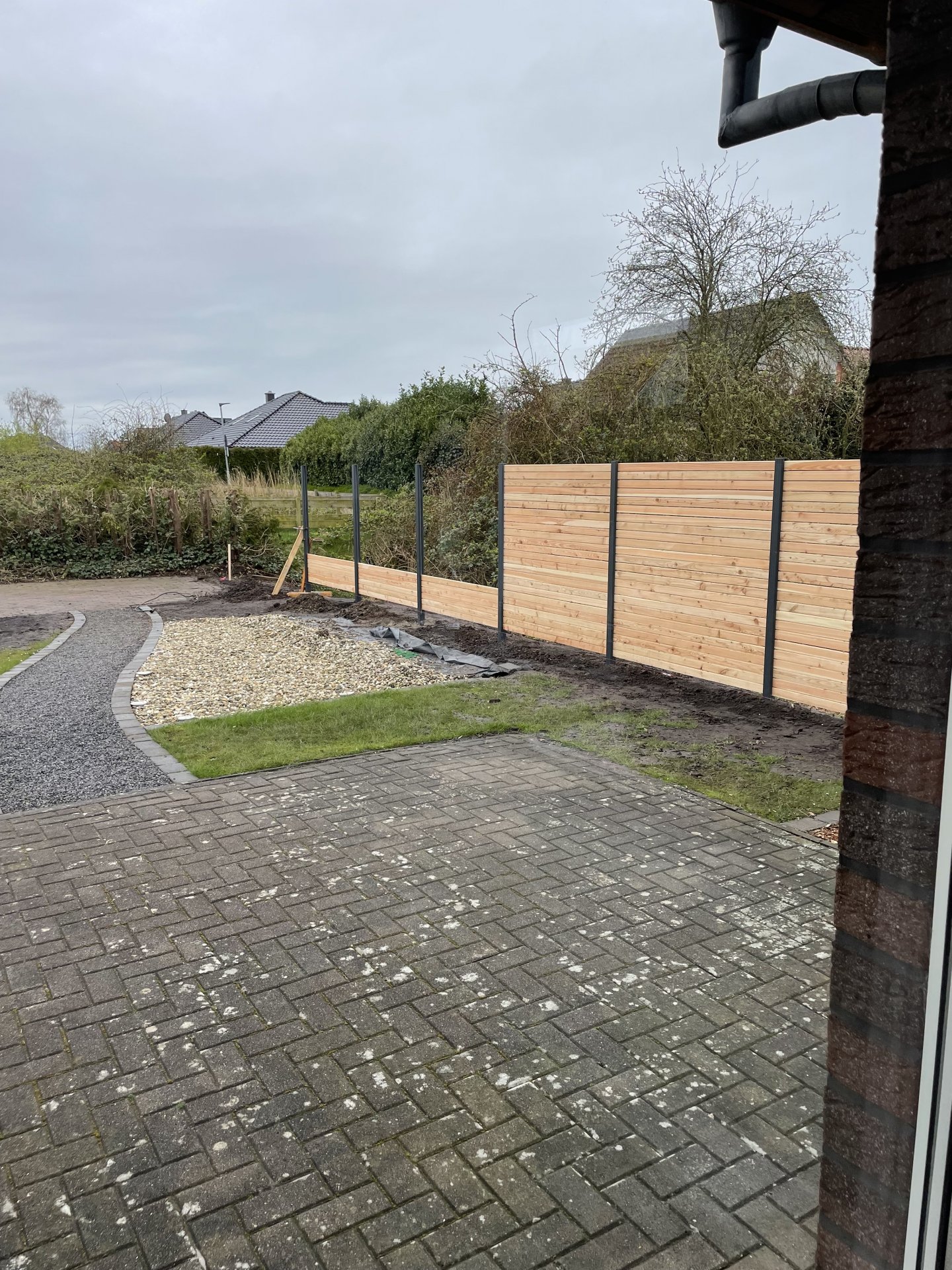 Zaunpfosten auf Bitumenbahnen über Carport