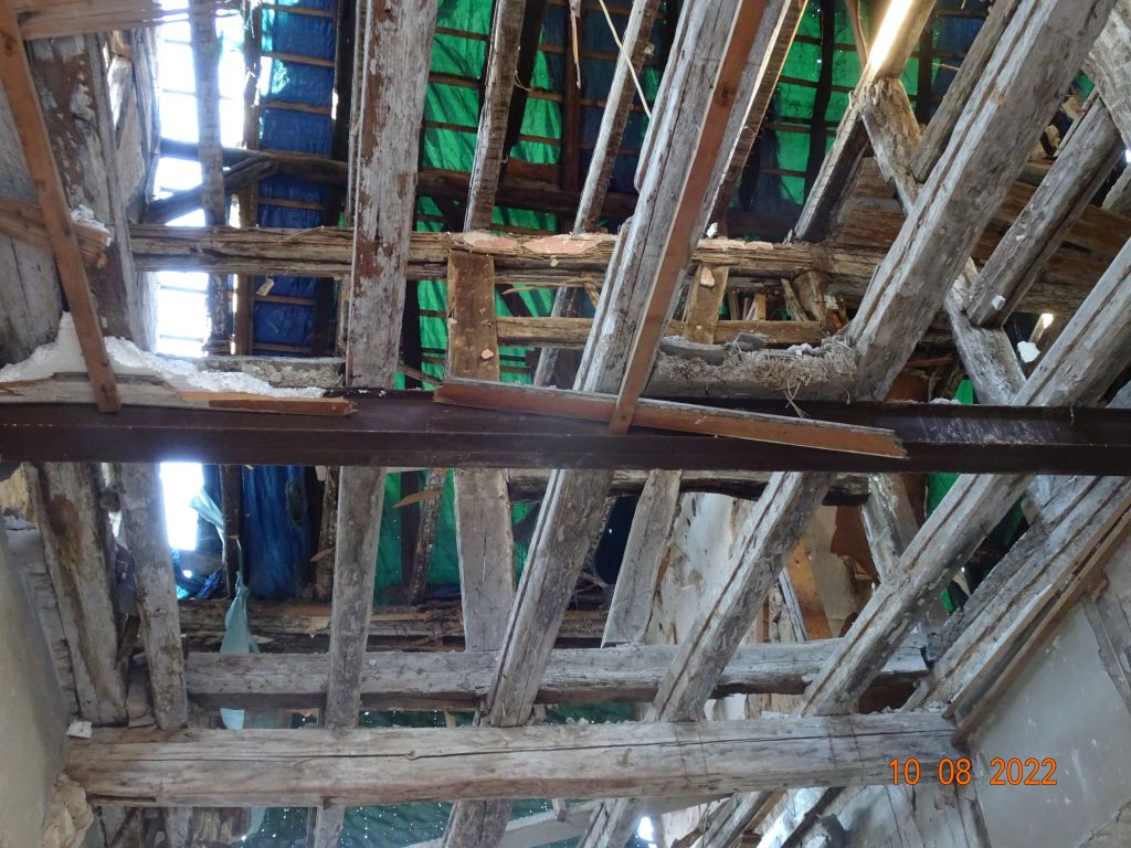 Bei dem angehängten Haus hat der Denkmalschutz derartige Forderungen gestellt, daß die Eigentümer den Wiederaufbau abgebrochen und sich im Garten eine neue Bleibe gebaut haben. DSC03236x.jpg DSC03237x.jpg DSC03239x.jpg