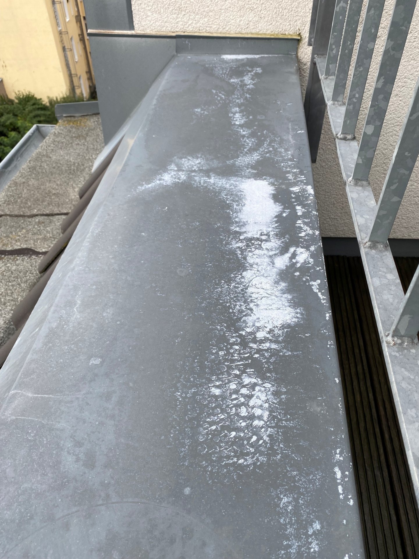 Zinkblech zu reinigen?: Auf unserer Dachterrasse wurde am Rand über die Abdichtungsfolie ein verzinktes Blech montiert. Das Blech sieht mittlerweile (nachdem die... -