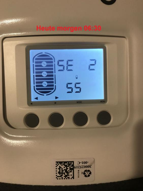Heute morgen: 06:00 Uhr Boiler voll geladen über Nacht: Sens1 & Sens2 55°C (soweit ich weiss befindet sich Sens 1 im oberen Bereich und Sens 2 irgendwo in der Mitte des Behälters)