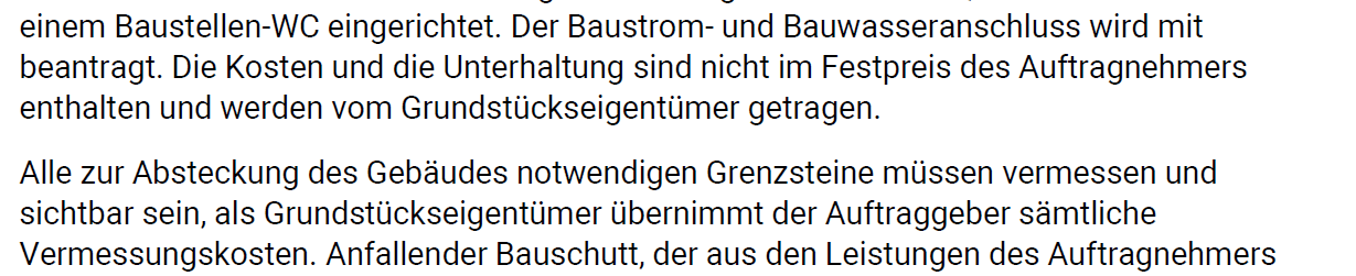 P.S. Die Anhänge habe ich mir auf dem Handy nicht genau angeschaut. Aber viel Eigenleistung bzw. Aufgaben des Bauherren sind enthalten.