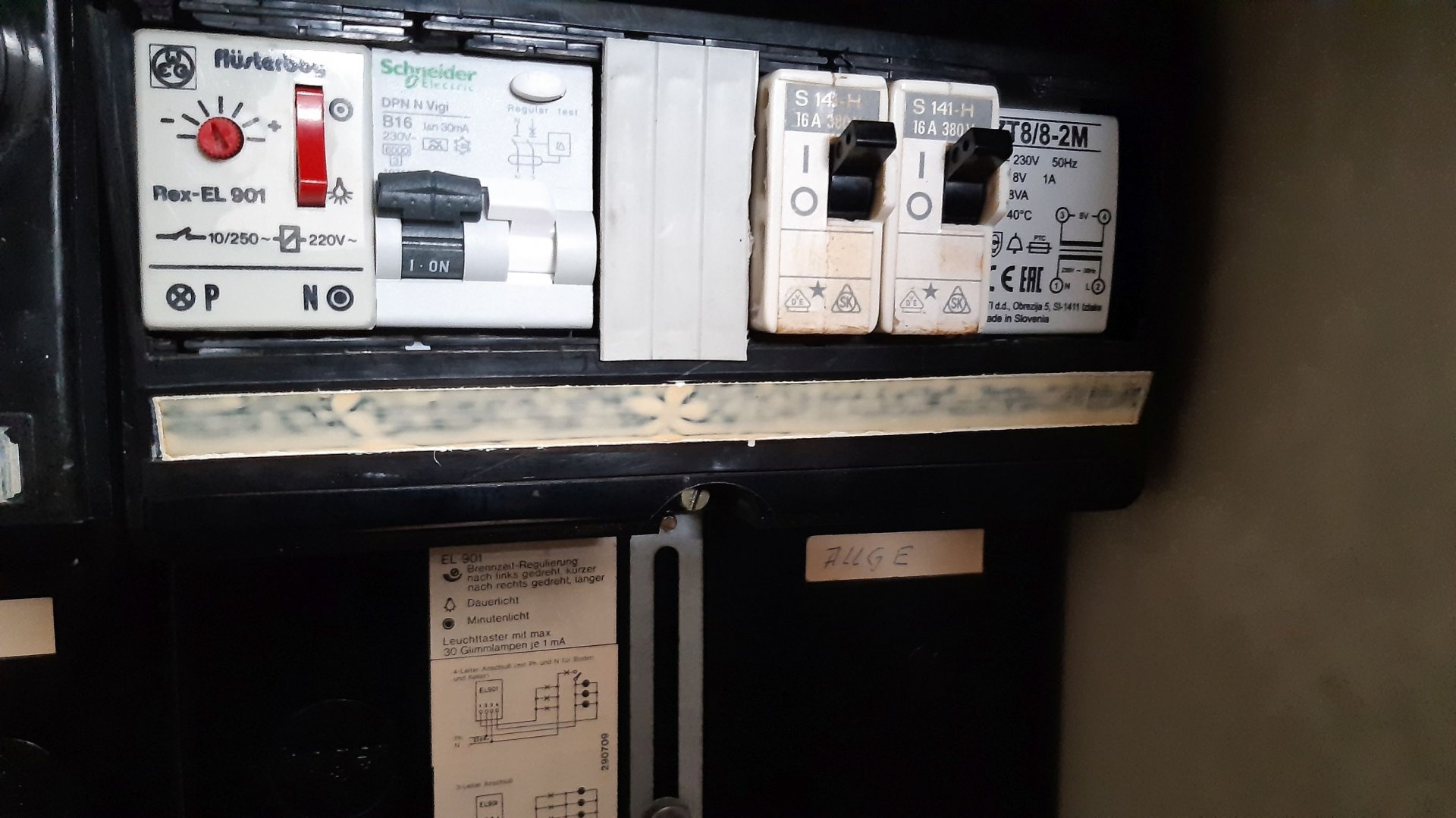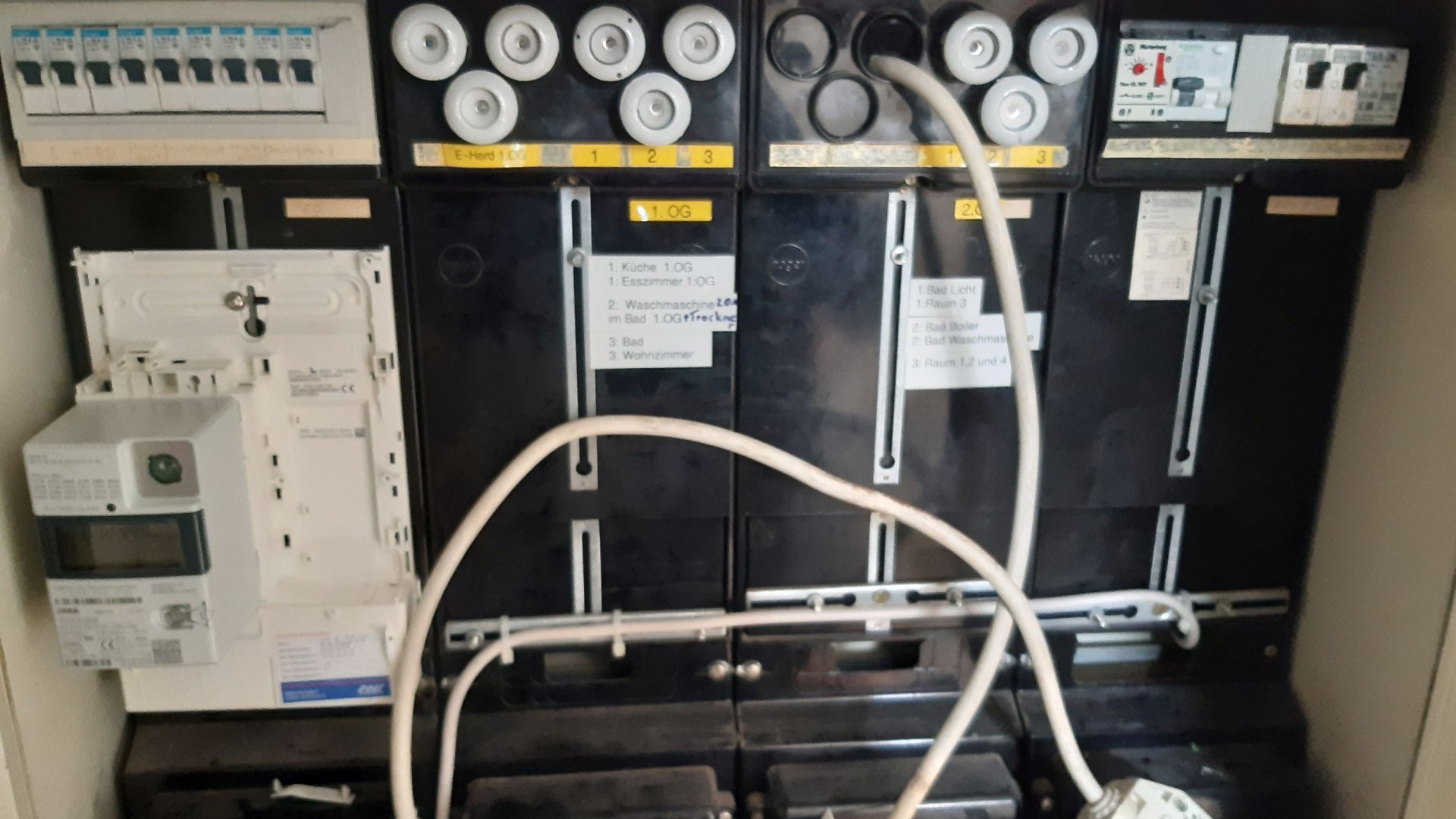 Zwischenzähler im Verteilerkasten für Messung von Stromverbrauch des Hoftor