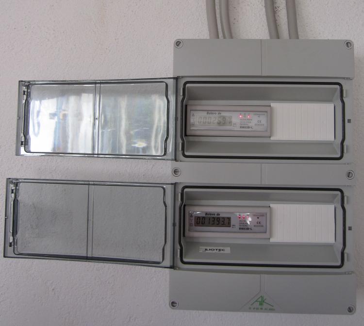 Zwischenzähler im Verteilerkasten für Messung von Stromverbrauch des Hoftor